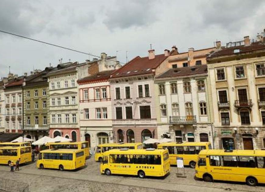 У центрі Львова виставили порожні шкільні автобуси на знак пам'яті про загиблих дітей
