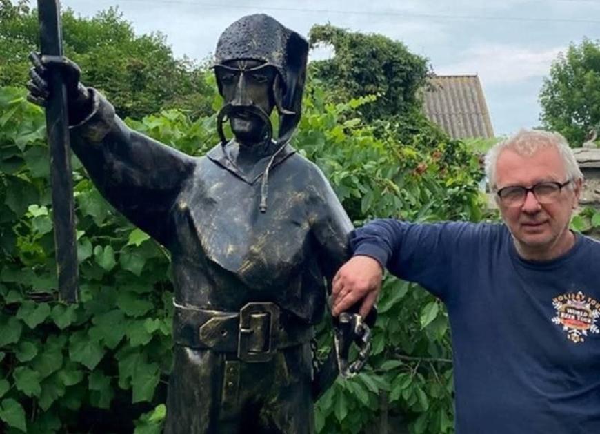 На Київщині коваль Юрій Савугін створив металеву скульптуру козака з ворожої ракети «Іскандер».